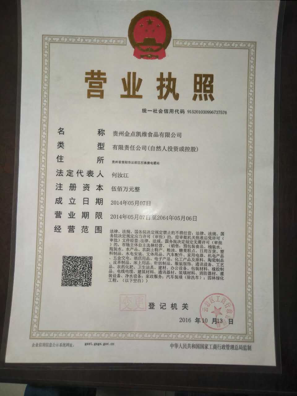 公司名称:贵州金点凯维食品有限公司